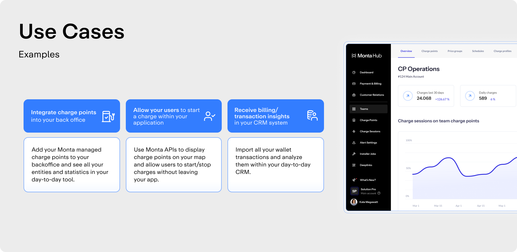 There are a ton of use cases for integrating with Monta's Partner API, find a few examples below: