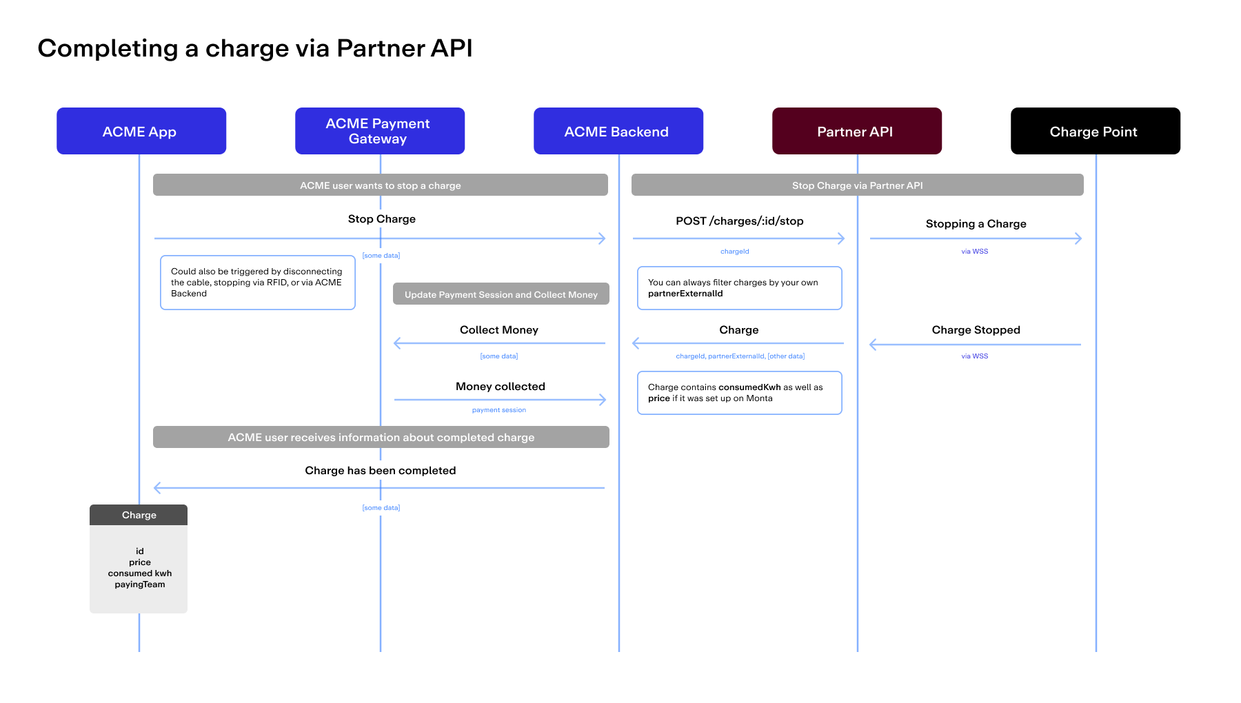 If you want to stop a charge yourself, make use of the GET /charges/{chargeId}/stop