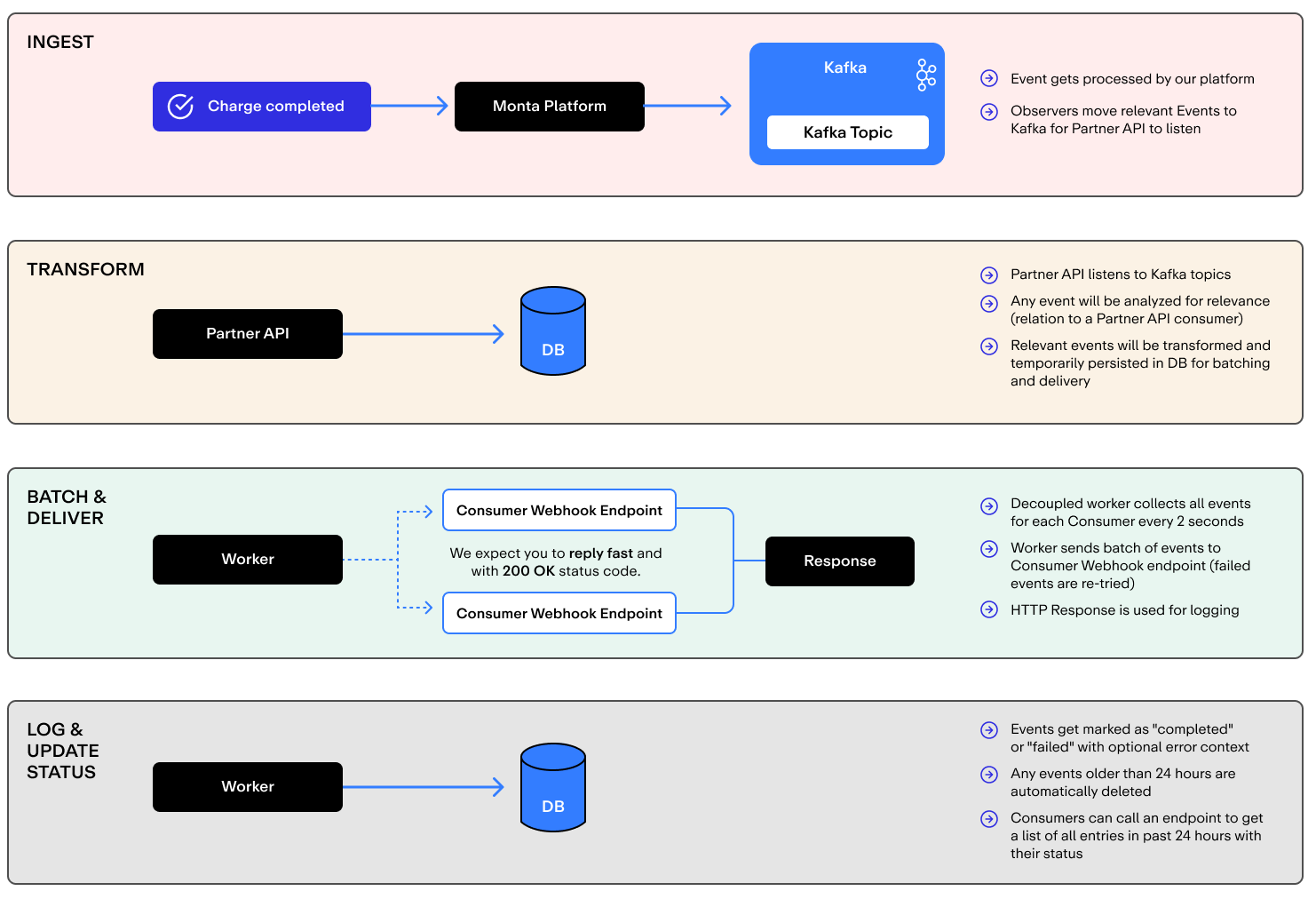In general the Partner API is polling-based, so you have to call our endpoints in order to get information. However, for selected partners, we added support for webhooks. Here you can provide a secret and endpoint and our system will inform you whenever a relevant (and supported) entity has changed.